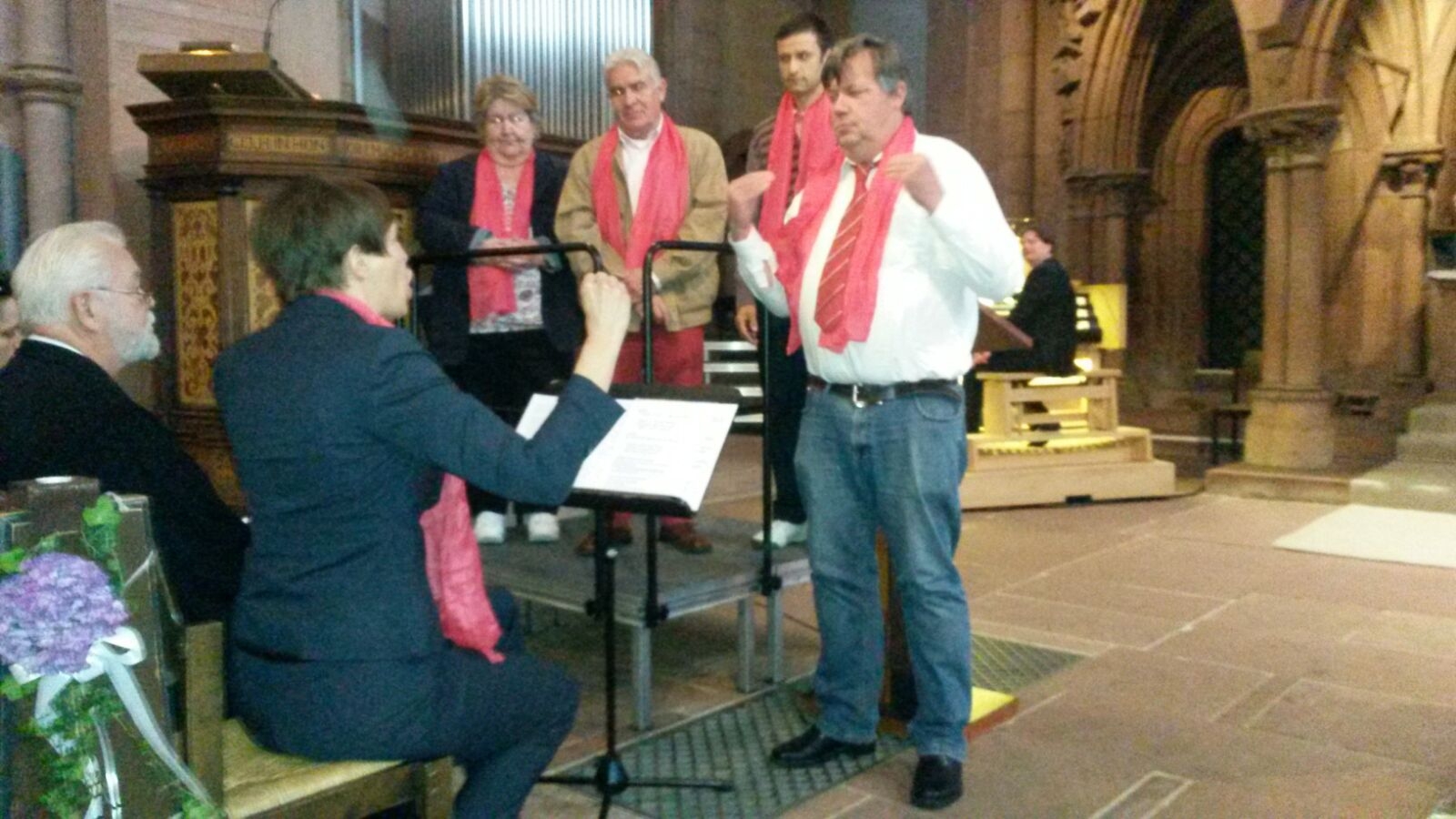 „Kraft des Glaubens“ – so hieß das Motto des Gottesdienstes in Gebärden- und Lautsprache am 27. September 2015 in Gelnhausen. Bereits zum vierten Mal feierten die Evangelische Kirchengemeinde Gelnhausen und die Gehörlosenseelsorge gemeinsam einen Gottesdienst. Dekan Klaus-Peter Brill predigte zum Bibeltext des 17. Sonntag nach Trinitatis, der Geschichte von der kanaanäischen Frau: eine kanaanäische (=nichtjüdische) Frau bittet Jesus, dass er ihre kranke Tochter heilt. Zuerst wendet sich Jesus von der Frau ab, weil sie keine Jüdin ist. Aber die Frau ist beharrlich. Sie legt ihren Stolz ab und gibt ihre Hoffnung nicht auf. Deshalb, so Brill, habe die Frau das Gespräch mit Jesus „gewonnen“. Ihr Glaube hat ihr die Kraft dazu gegeben. Deshalb sei sie ein Vorbild, „solchen Glauben zu lernen“.