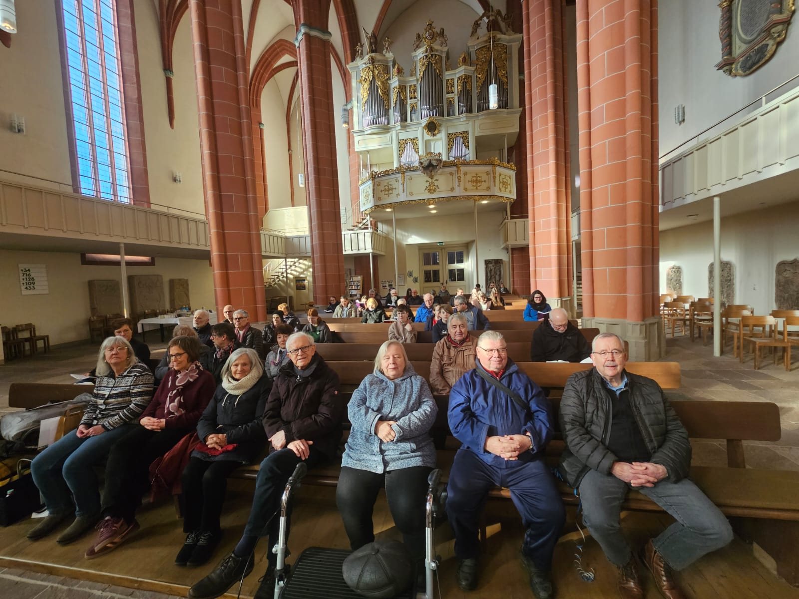 Stadtkirche am 15. Februar. Das Gebärdenkreuz wird auf den Altar gestellt. Das zeigt: Hier feiern die hörende und die gehörlose Gemeinde 1x im Jahr gemeinsam Gottesdienst. Dieses Jahr genau am Faschingssonntag: Bunt und fröhlich und mit großem Team. Pfarrer Heidelbach und Pfarrerin Bätzing haben den Gottesdienst gemeinsam gemacht. Marion Schleicher, Lehrerin an der Hermann-Schafft-Schule, hat gedolmetscht. Ingo Kloss und Klaudia Geisel haben Theater gespielt: Jesus hilft uns, die Welt mit Freude und Hoffnung zu sehen: Motto: „Los jetzt und die Augen auf! Wir ziehen mit Jesus und es geht bergauf!“ (Lukas 18).